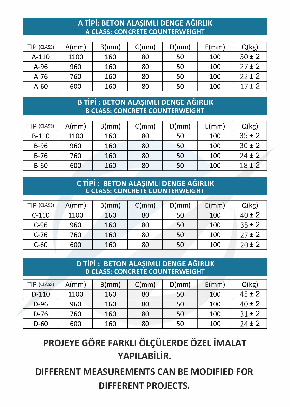PROJEYE GÖRE FARKLI ÖLÇÜLERDE ÖZEL İMALAT YAPILABİLİR.
